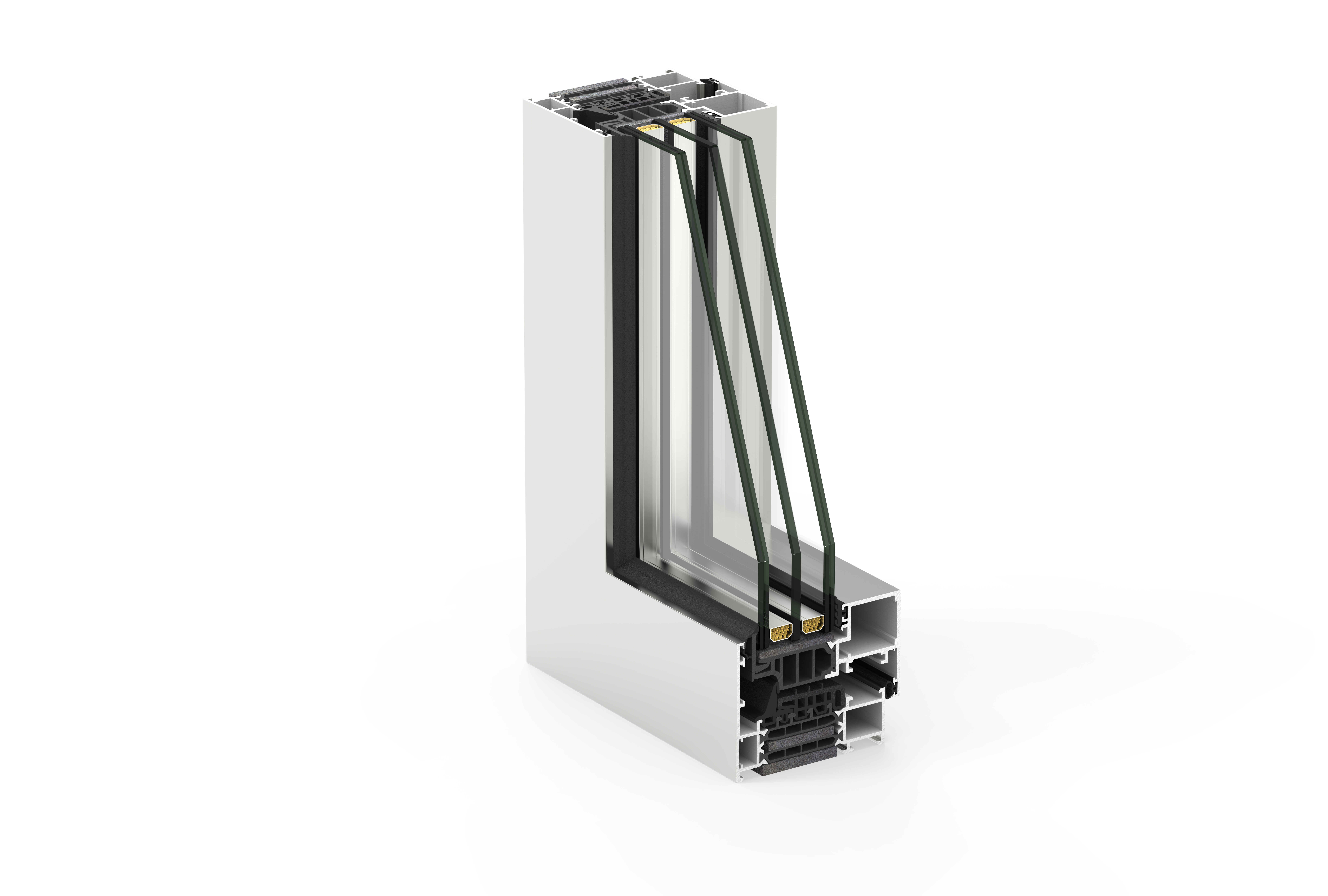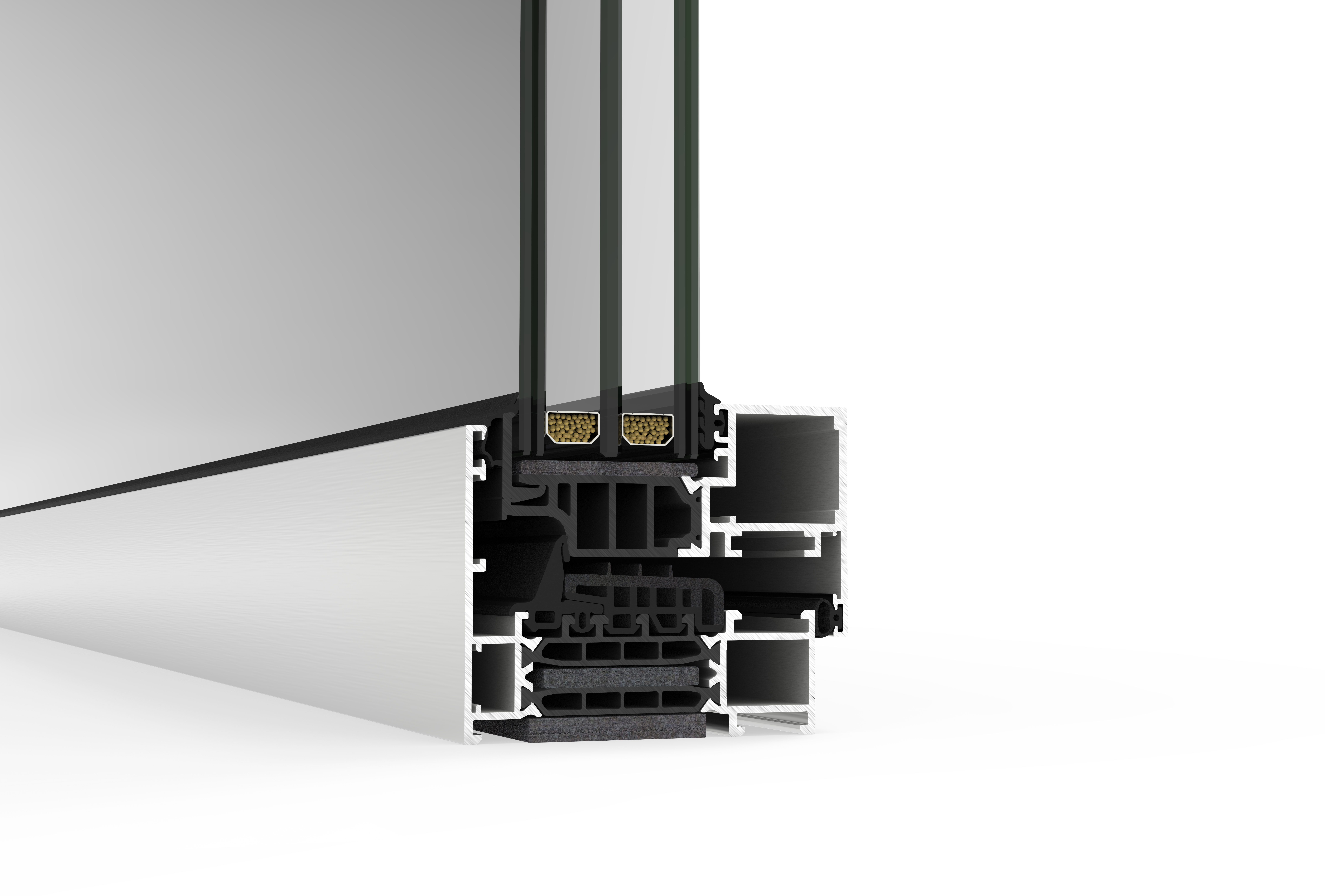 - Strefa przekladki termicznej o szerokosci 45 mm oraz pianka z poliolefiny umieszczona w oscieznicy i skrzydle pozwalaja na osiagniecie wspólczynnika przenikalnosci o wartosci do 0.8 W/m²K, zwiekszajac tym samym efektywnooeæ energetyczna. Ponadto, system ten cechuje sie wysokim stopniem wyciszenia wnetrza, który uzyskany zostal poprzez mozliwosc zastosowania szklenia o grubosci do 50 mm.