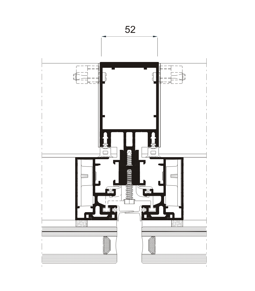 - W systemie Fasada ST 52 szkło przykleja się do aluminiowej ramy za pomocą silikonu strukturalnego. Umocowanie ram z przyklejonym już oszkleniem do profili nośnych odbywa się natomiast za pomocą klamer z systemu SG52.