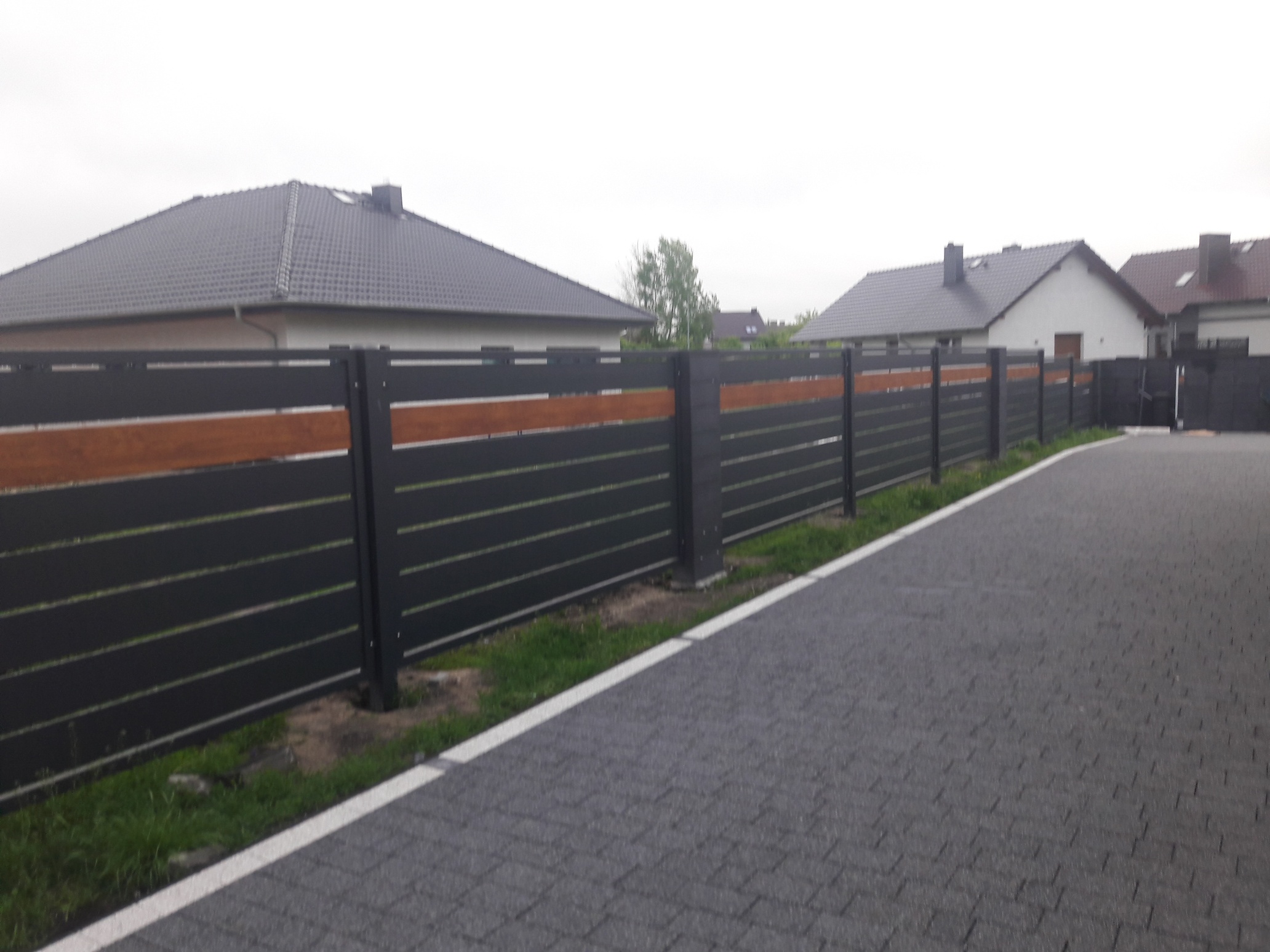 Materiały: profile, akcesoria, uszczelki umożliwiają wykonywanie ogrodzeń aluminiowych w różnorodnych wariantach. Konstrukcje przęseł mogą być wykonywane w tradycyjnych ramach, jak i nowoczesnym wariancie bezramowym. Wypełnienie stanowią panele z prostokątnych kształtowników aluminiowych o wymiarach od 20 do 200 mm, zarówno w układzie poziomym, jak i pionowym. Rozstaw poprzeczek jest dowolny i pozostaje w dyspozycji zamawiającego. Wielu z nas ceni intymność, dlatego możliwe jest wykonywanie konstrukcji z wypełnieniem pełnym zapewniającym ochronę przed niepożądanym wzrokiem.