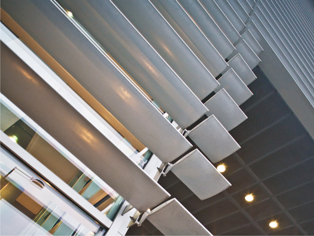 • System osłony przeciwsłonecznej fasad. Wytłaczane lamele aluminiowe regulują dopływ światła do wnętrz i zapewniają wyższą wydajność energetyczną budynku - dzięki tworzeniu stref cienia, zapobiegają przegrzewaniu się pomieszczeń i zmniejszają zapotrzebowania energii na chłodzenie budynku.