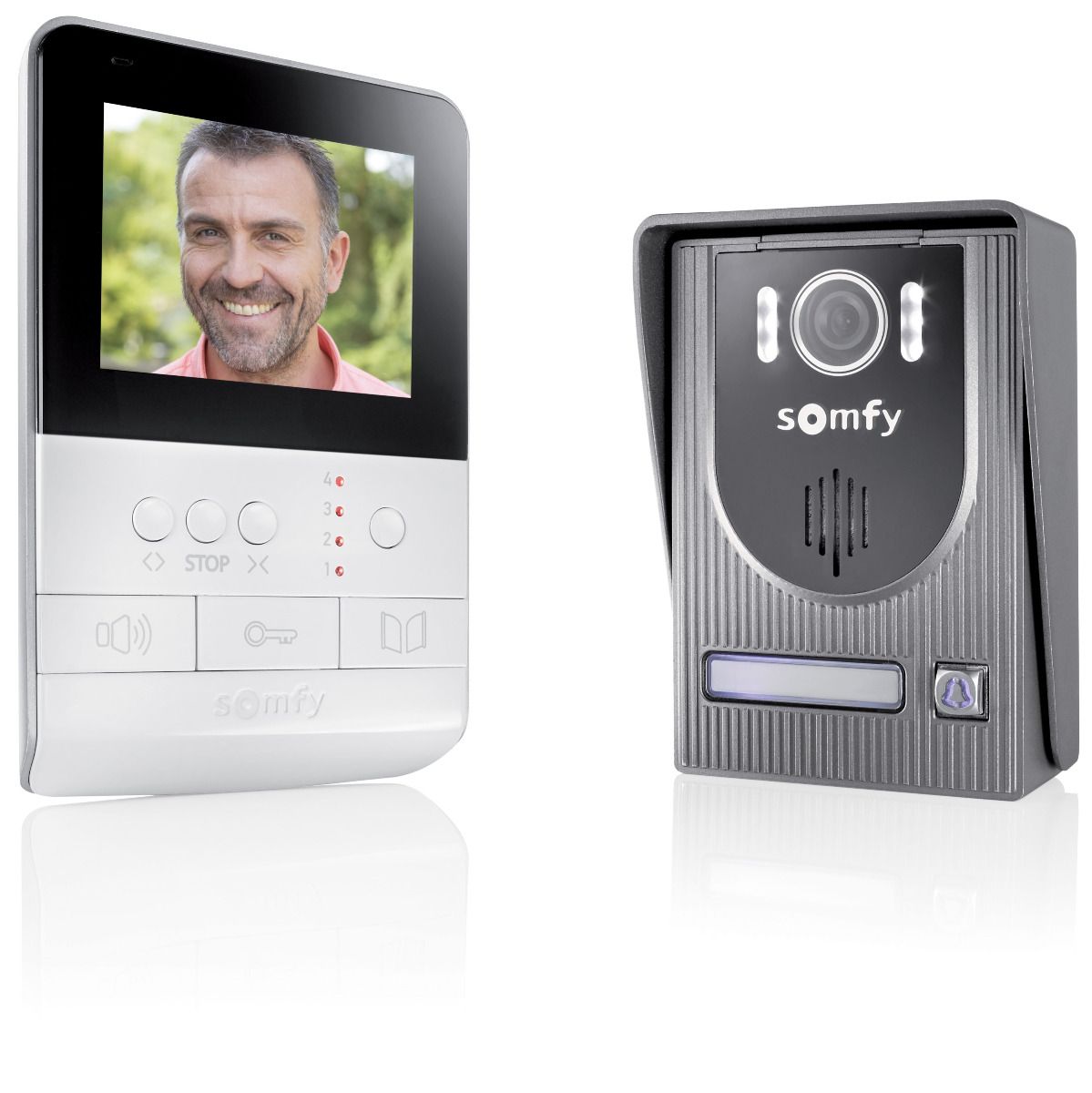 - Kolorowy, 4” ekran umożliwia identyfikację gości, również w nocy, dzięki diodom LED w kamerze panelu zewnętrznego