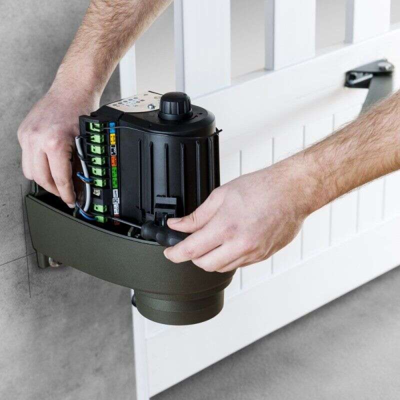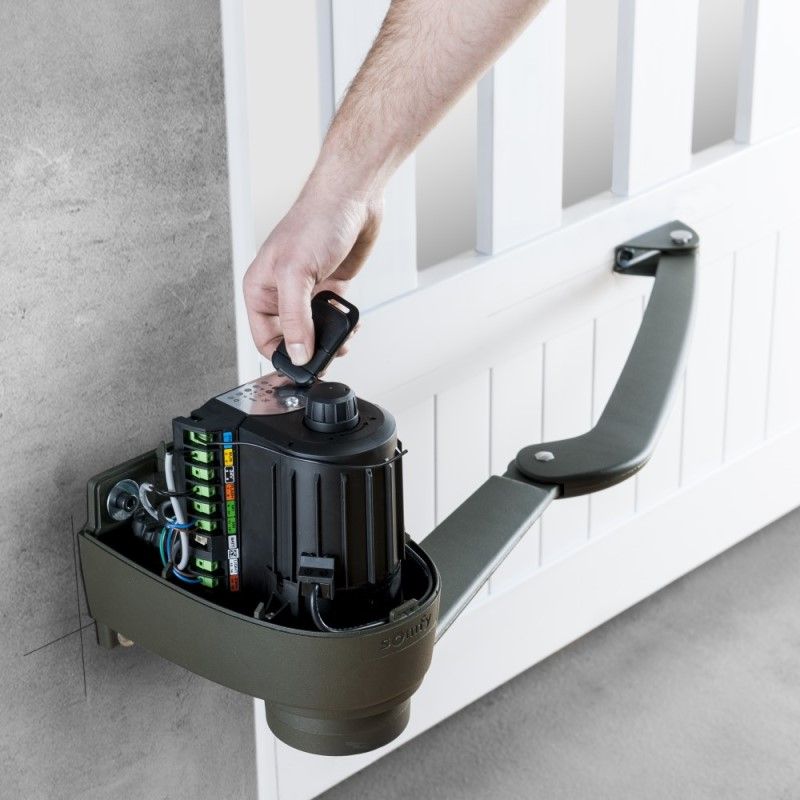 - Konstrukcja jednoramienna oszczędzająca bramę dzięki odtwarzaniu naturalnego ruchu występującego przy otwieraniu ręcznym