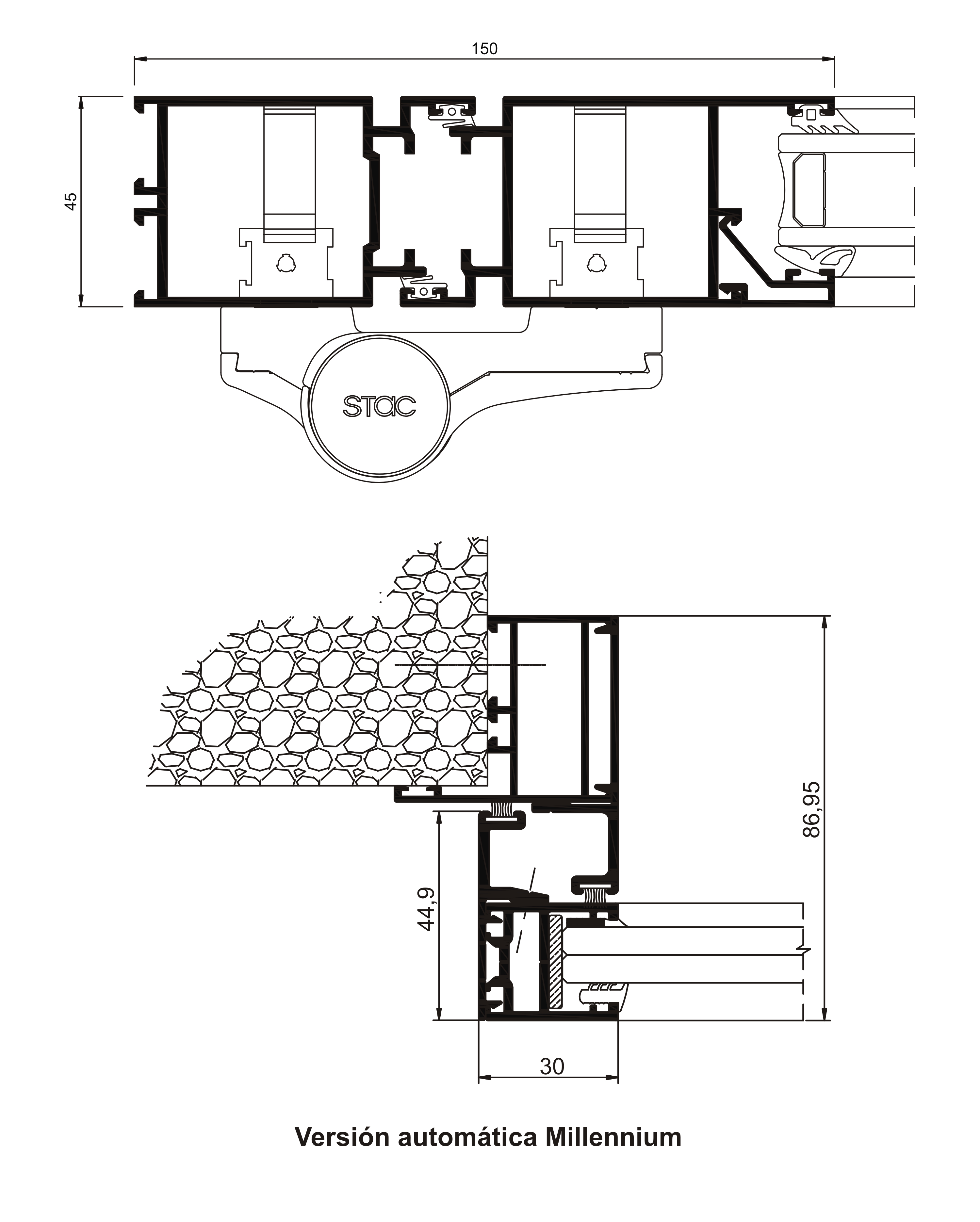 System drzwiowy Millennium 2000 Automatyczny: pozwala na zaprojektowanie drzwi o skrzydłach przesuwnych, otwieranych automatycznie. To nowoczesne rozwiązanie optymalizuje przestrzeń pomieszczeń oraz jest idealne dla miejsc o dużym natężeniu ruchu (biura, centra handlowe, szpitale, itp.). Gwarantuje wygodne użytkowanie oraz bezpieczeństwo w sytuacjach awaryjnych. -