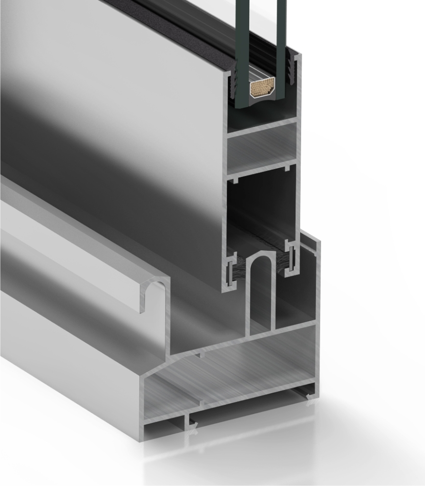 System przesuwny prezentujący możliwość wyboru skrzydeł o krawędzi prostej, skośnej lub zaokrąglonej.
